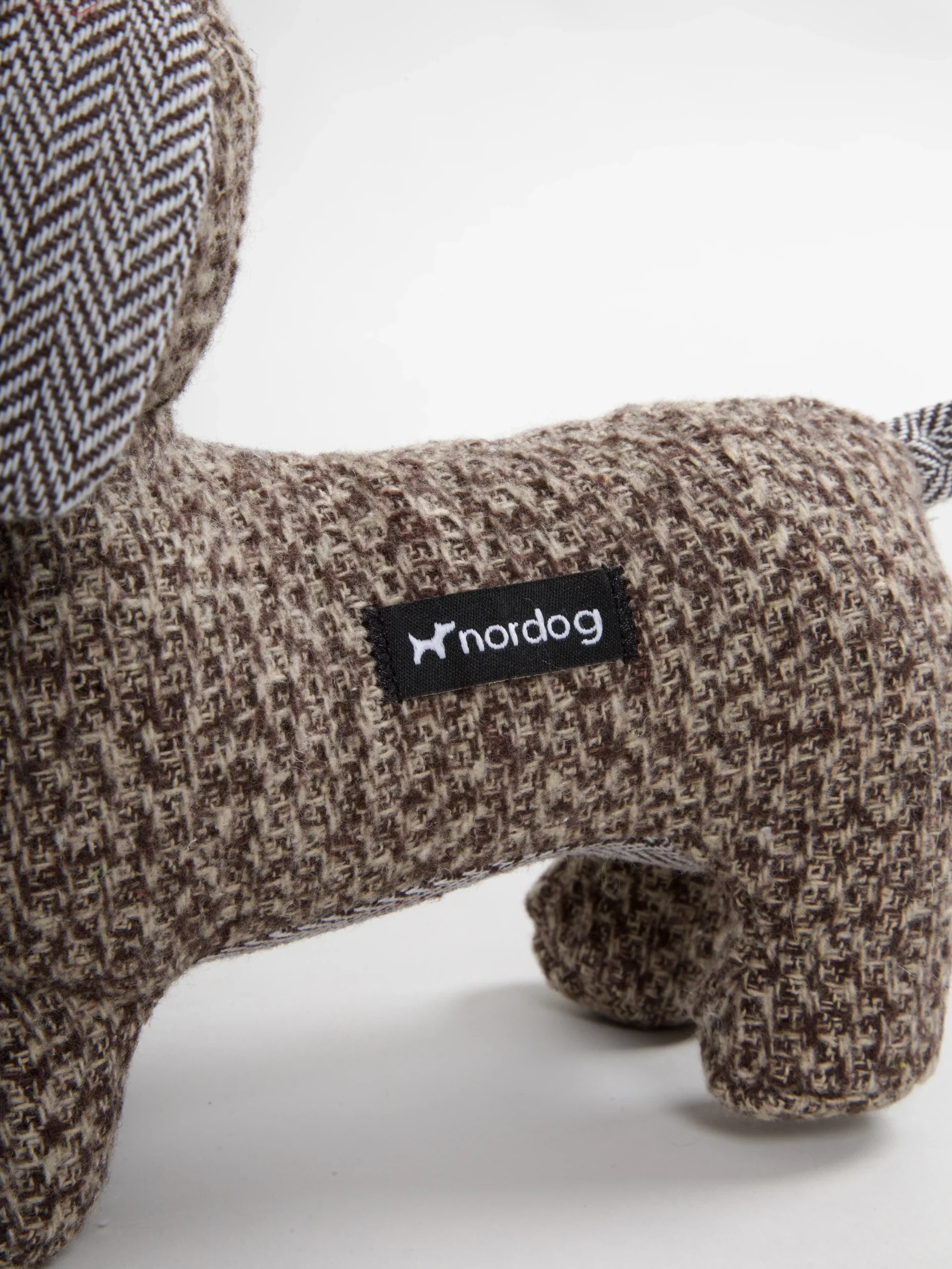 Deze charmante teckel van zachte stof is het perfecte maatje voor je hond. Hij ziet er stijlvol uit met zijn klassieke tweedlook en voelt ook nog eens prettig aan. Ideaal om mee te knuffelen of zachtjes op te kauwen.